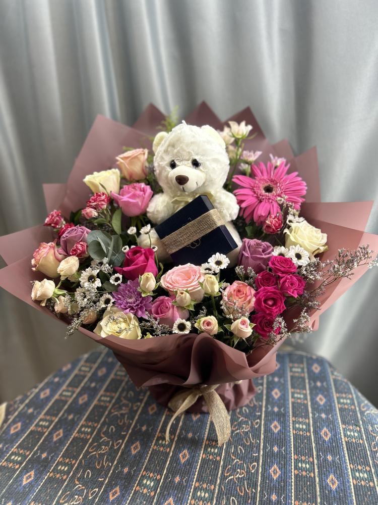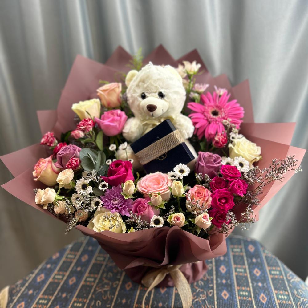 اكسسوار زايروس مع علبة الماركةدب ميني ابيضتنسيق ورد طبيعي فخم مع تغليف راقيعبارة من اختيارك⭐️سيتم التواصل معك من اجل اختيار الاكسسوار⭐️