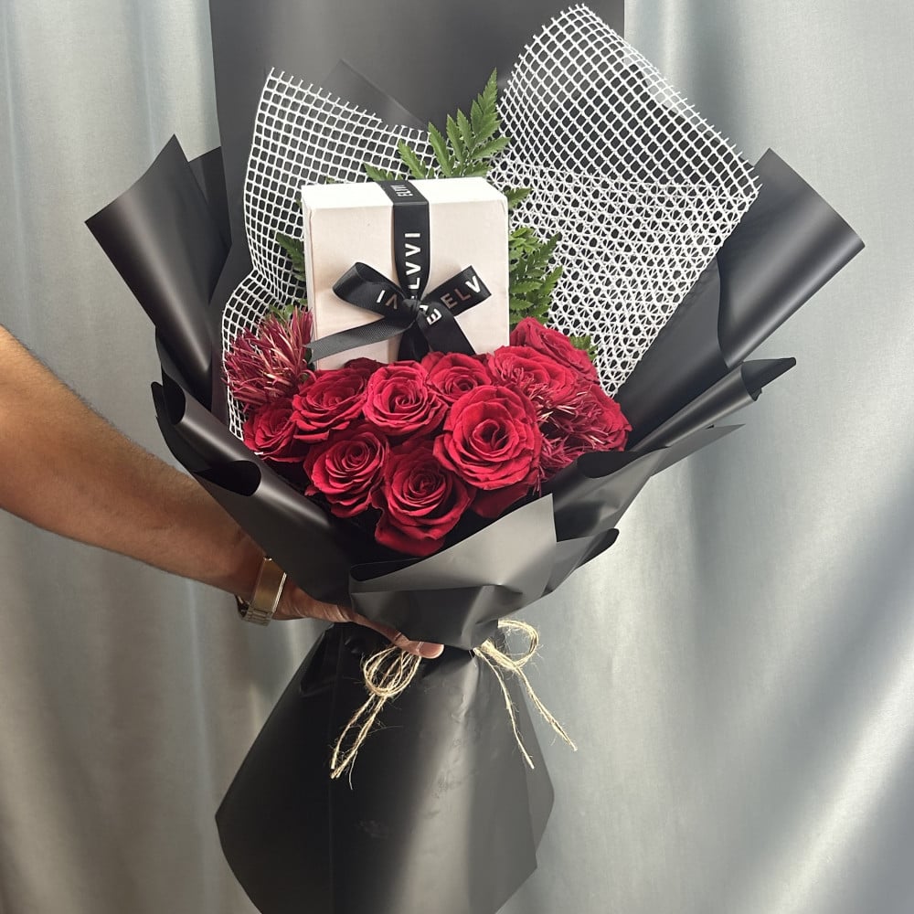3- بوكيه ورد طبيعي مع تغليف راقي