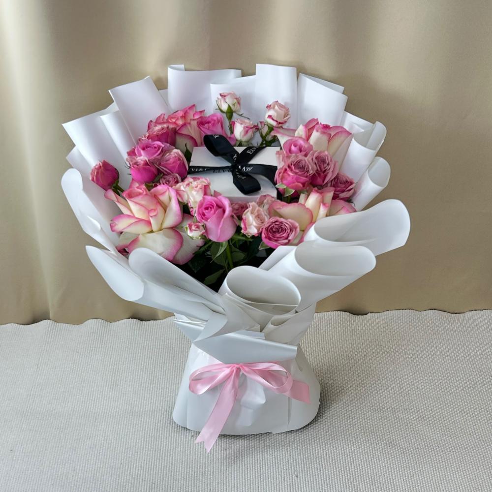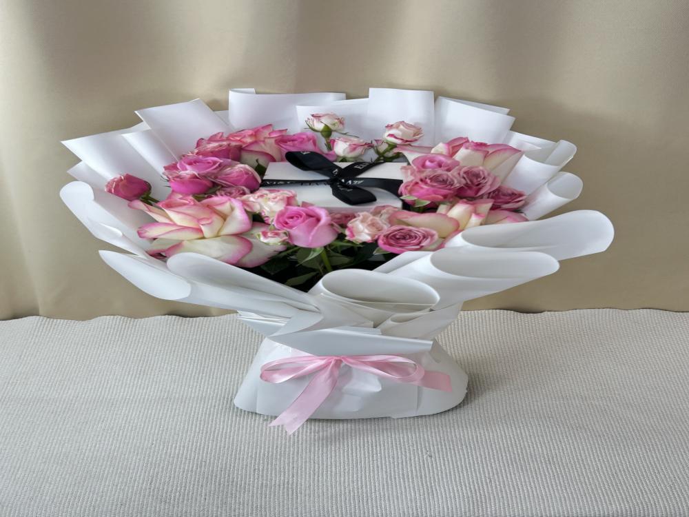 - بوكيه ورد طبيعي فاخر مع تغليف راقي