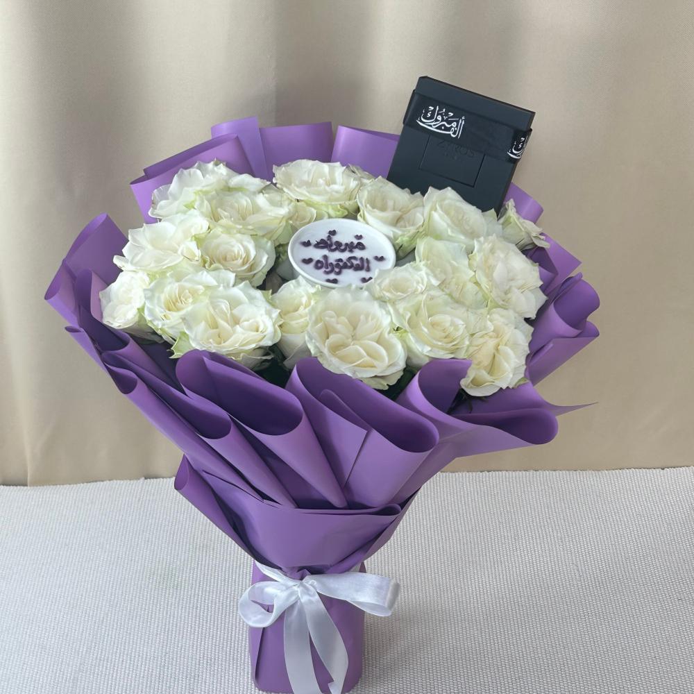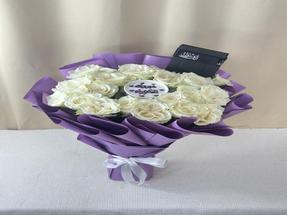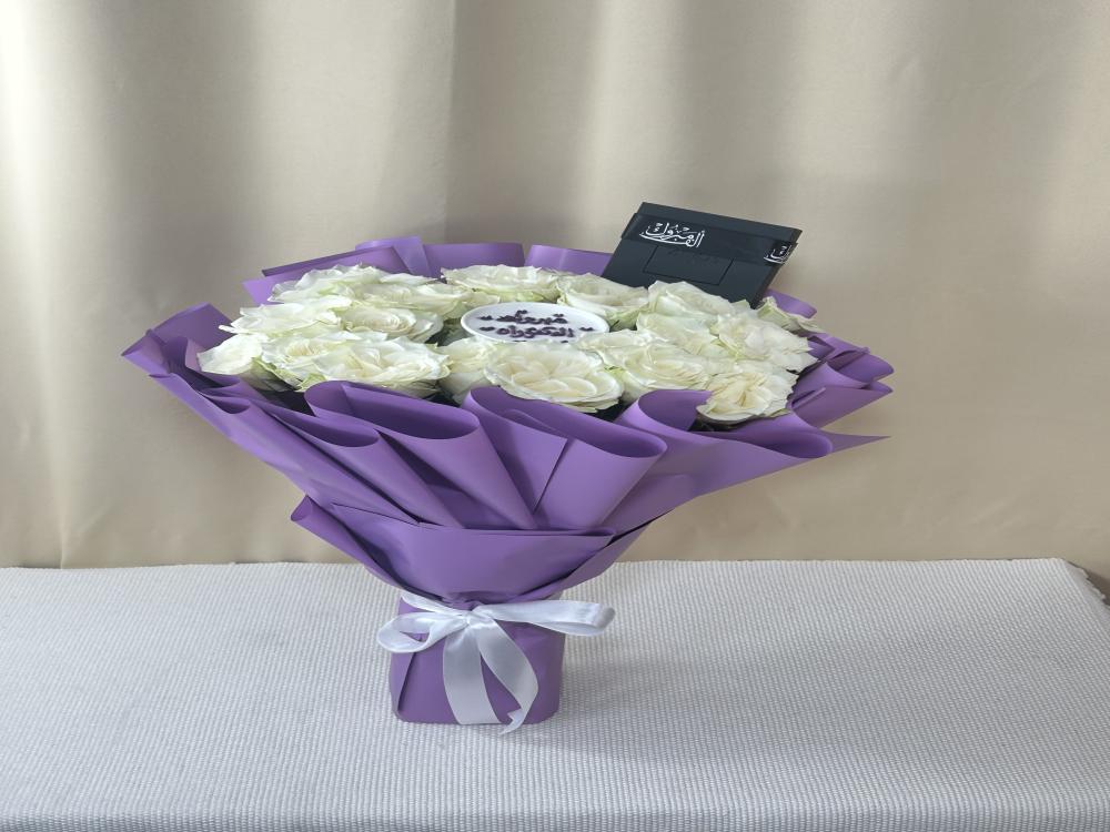 - بوكيه ورد طبيعي فاخر مع تغليف راقي