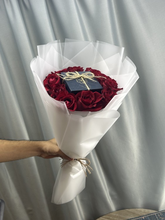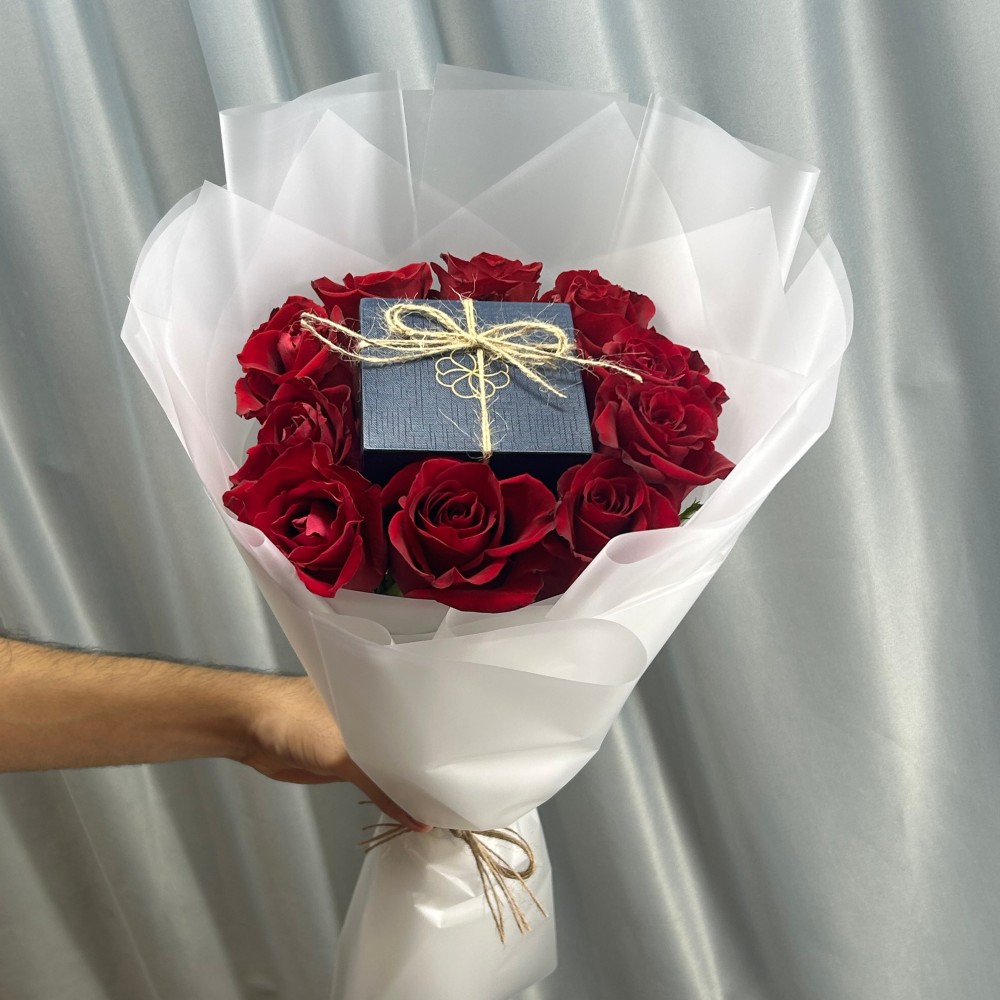 - بوكيه ورد طبيعي ( 10 وردات ) مع تغليف راقي