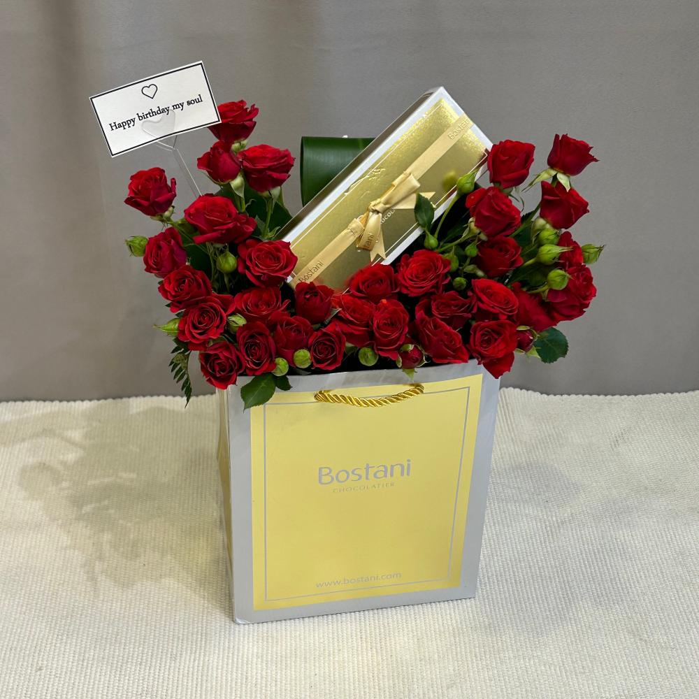 2. تنسيق ورد أحمر على كيس بستاني