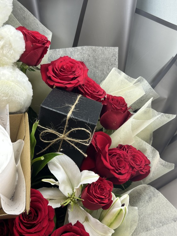 - بوكيه ورد طبيعي فخم وكبير مع تغليف راقي