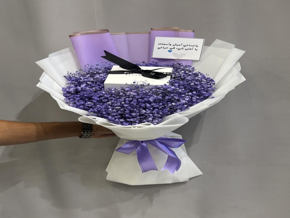 - بوكيه ورد طبيعي جبسوفيليا بنفسجي (موف)