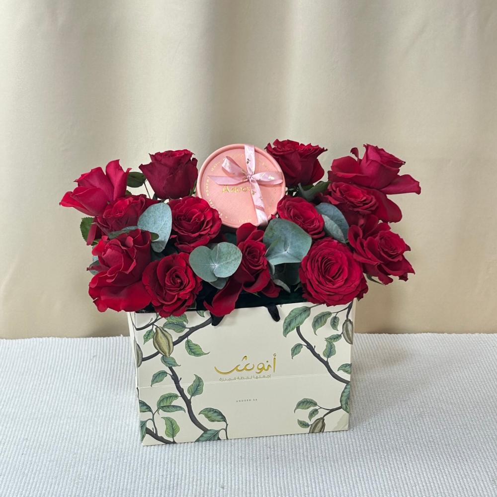 2. تنسيق ورد أحمر على كيس أنوش
