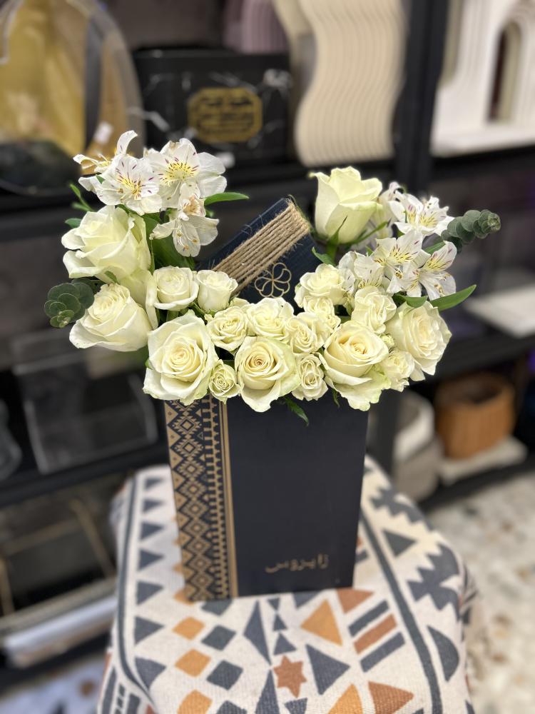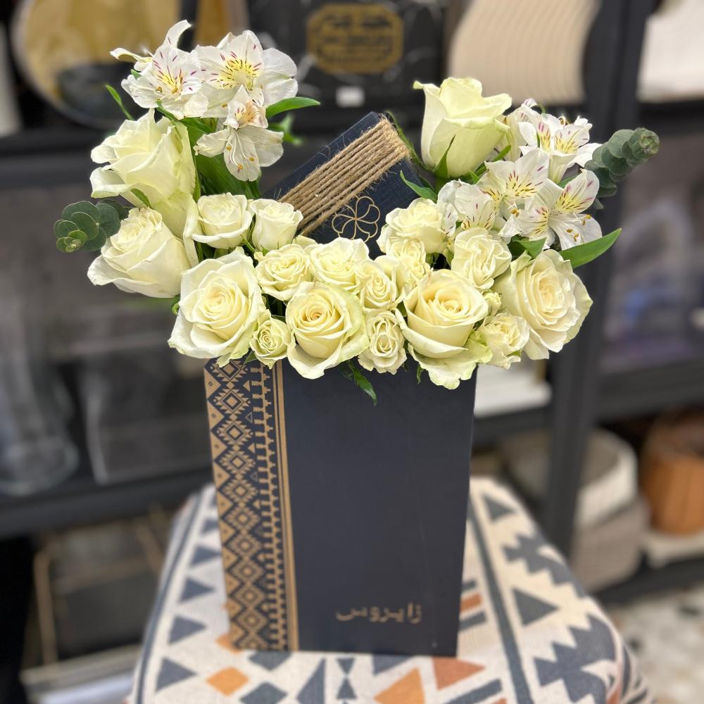 - تنسيق ورد طبيعي فاخر على كيس الماركة