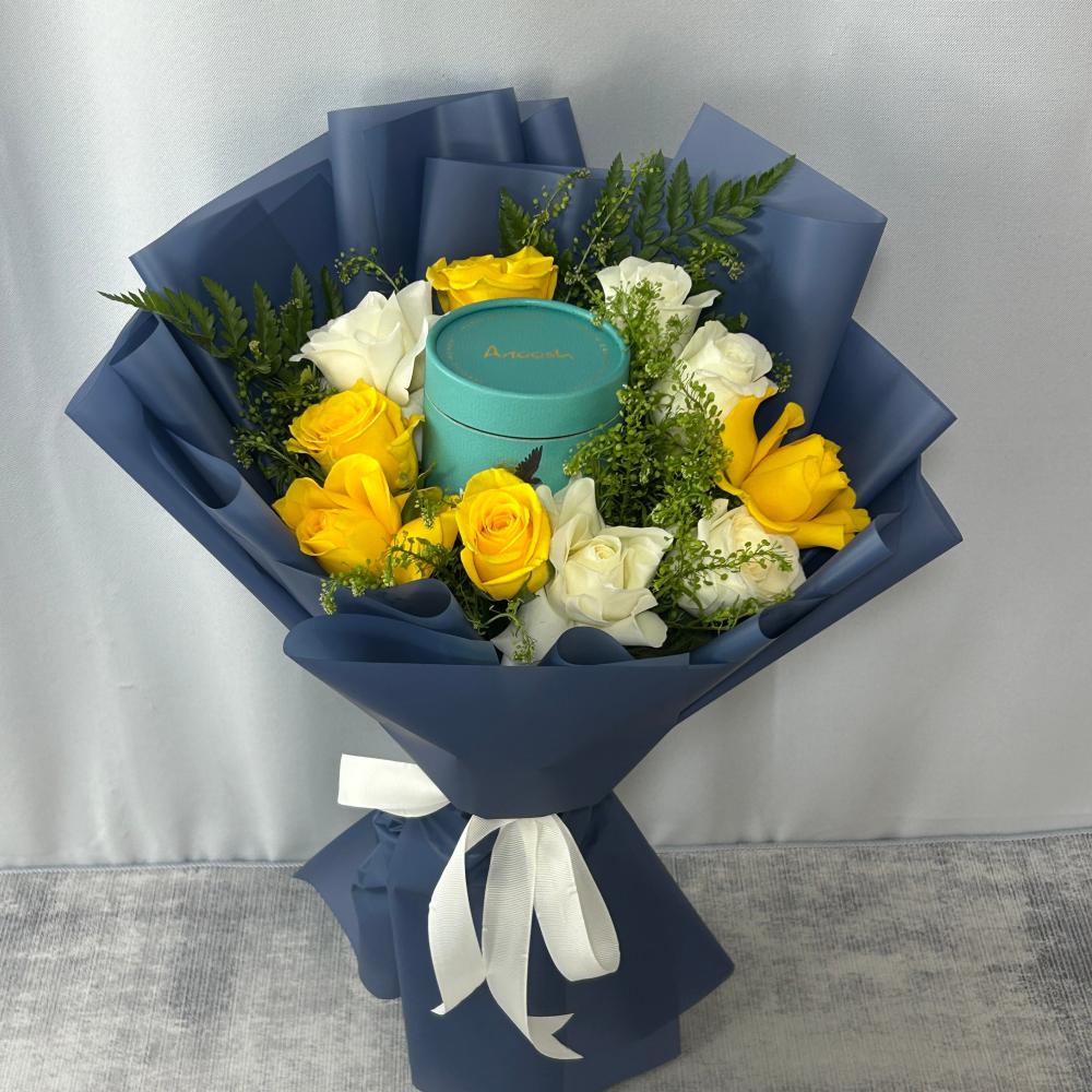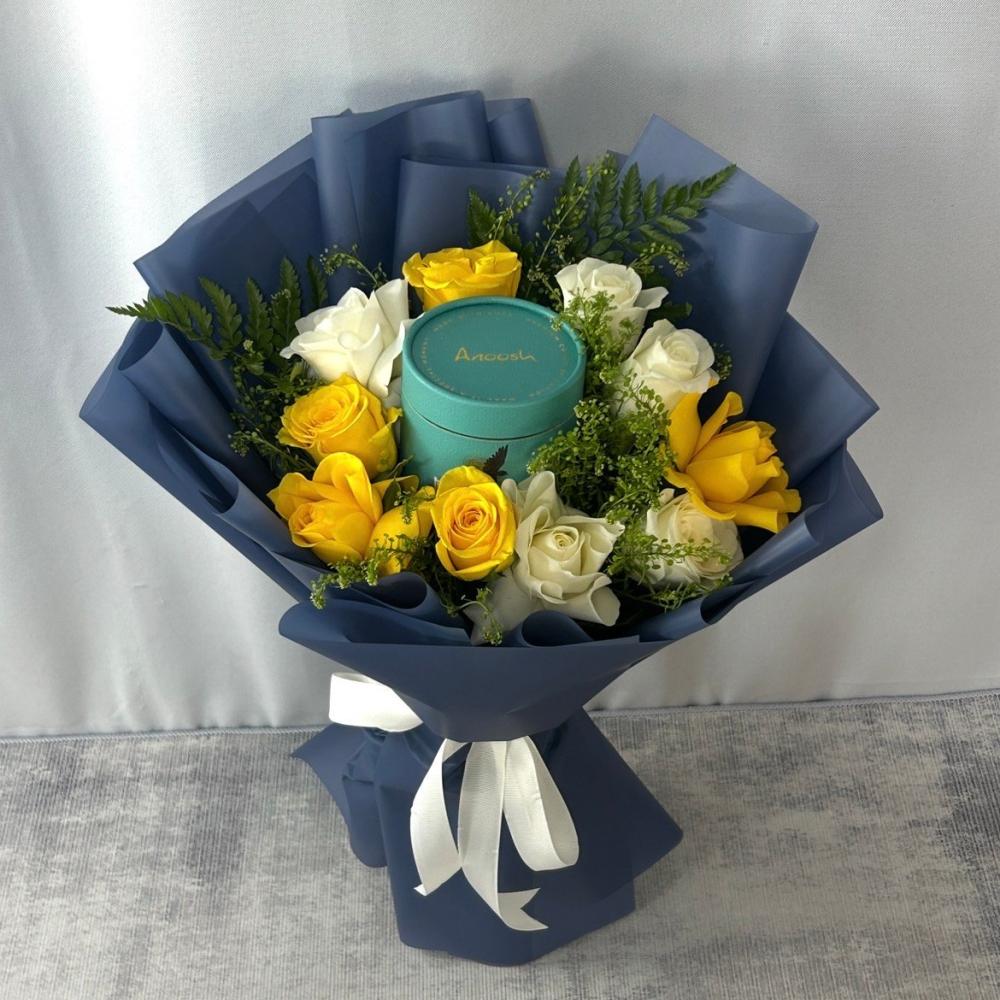 • بوكيه ورد طبيعي 10 وردات مع تغليف راقي