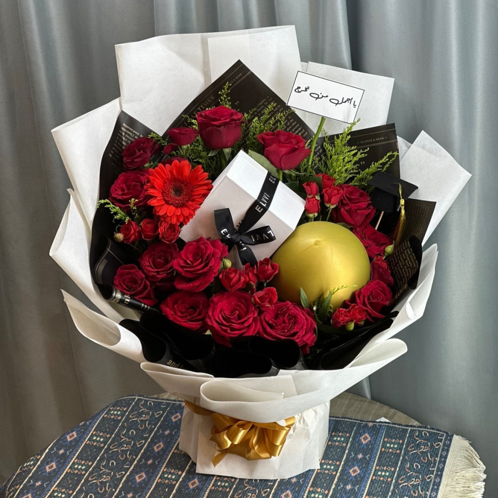 2- تنسيق ورد طبيعي فخم مع بالون مع تغليف فخم